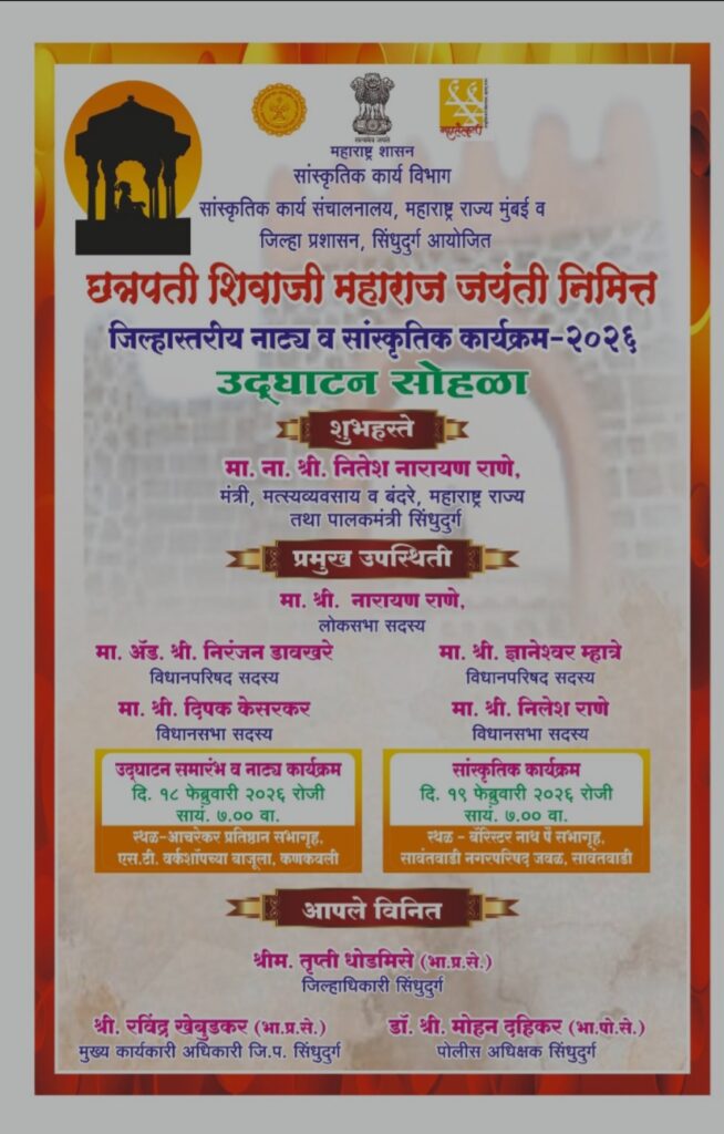 छत्रपती शिवाजी महाराज जयंतीनिमित्त सिंधुदुर्गात भव्य नाट्य-सांस्कृतिक सोहळा