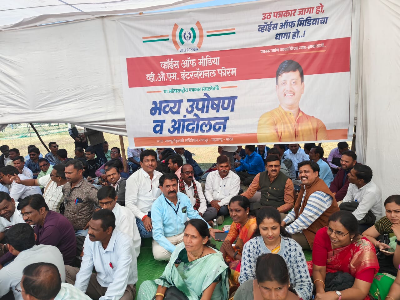 या आंदोलनामध्ये व्हॉईस ऑफ मीडियाचे संस्थापक अध्यक्ष संदीप काळे, कोअर कमिटीचे प्रमुख किशोर कारंजेकर, महिला प्रदेशाध्यक्ष रश्मी मारवाडी, नागपूरचे जिल्हाध्यक्ष दिलीप घोरमारे आदिसह पदाधिकारी मोठ्या संख्येने उपस्थित होते. 11, 12 आणि 13 डिसेंबर असे तीन दिवस हे उपोषण सुरू राहणार आहे, मागण्या मान्य झाल्याशिवाय व्हाईस ऑफ मीडियातील सर्व पदाधिकारी हे आंदोलन मागे घेणार नाहीत त्यामुळे मुख्यमंत्री देवेंद्र फडणवीस यांनी तातडीने पत्रकारांच्या भावना लक्षात घेऊन निवेदनात दिलेल्या मागण्यांवर साधक-बाधक चर्चा करून तात्काळ अंमलबजावणी करावी अशी मागणी व्हॉईस ऑफ मीडिया इंटरनॅशनल फोरमच्या वतीने करण्यात येत आहे.