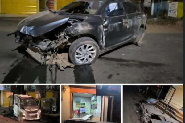 एका कार सह दुकानांना धडक कुडाळ प्रतिनिधीकुडाळ शहरात मध्यरात्री घडलेल्या एका थरारक घटनेने संपूर्ण परिसर हादरून गेला. लुटीचा प्रयत्न करून पलायन करणाऱ्या भरधाव बलेनो कारचा गीता हॉटेलसमोरील मुख्य रस्त्यावर भीषण अपघात झाला. अनियंत्रित झालेल्या कारने रस्त्यालगतच्या दुकानांना जोरदार धडक देत रस्त्यावर उभ्या असलेल्या एका कारलाही ठोकर दिली. या अपघातात बलेनो कारसह उभी वॅनगार कार आणि…