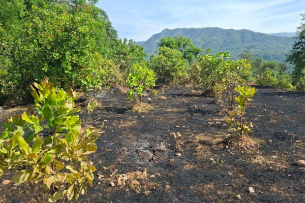 शिरशिंगे येथे काजू बागायतीला भीषण आग; धोंड कुटुंबियांचे लाखो रुपयांचे नुकसान