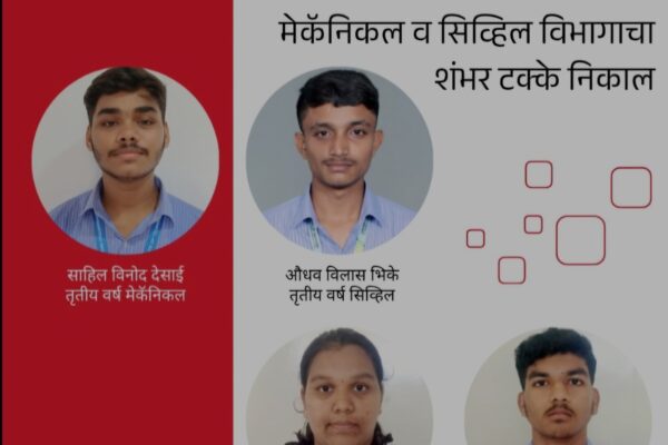 भोसले पॉलिटेक्निकचा हिवाळी सत्र निकाल ९७% : मेकॅनिकल व सिव्हिल विभागाचा शंभर टक्के निकाल