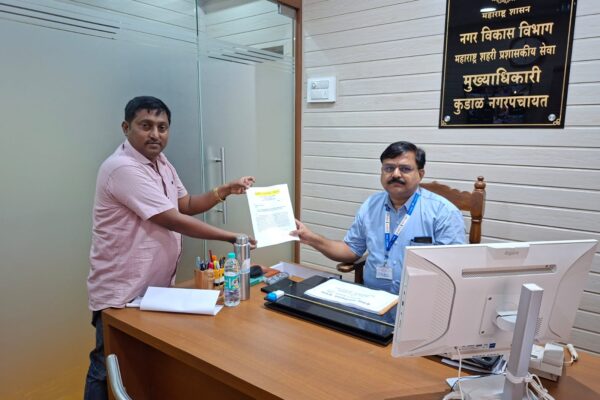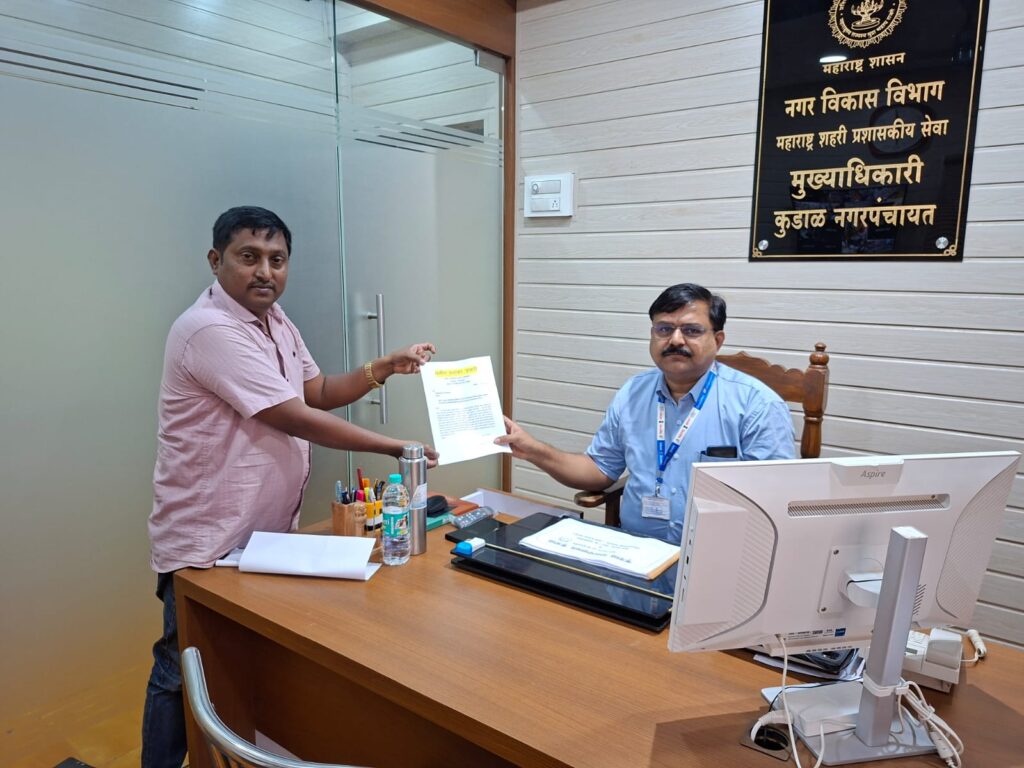 कविलकाटे येथील ग्रीन झोन काढण्यासाठी समिल जळवी यांचे कुडाळ नगरपंच्यायत मुख्यधिकारी यांना निवेदन.